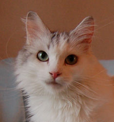 tortie met wit, met een fantastische kleurverdeling en ook nog eens blauwe ogen!!