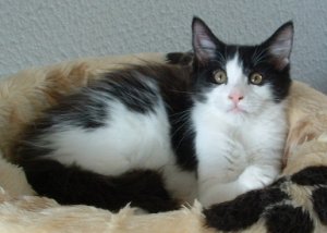 1 zwart met wit katertje, 1 zwart schildpad met wit poesje, 1 rood zilver