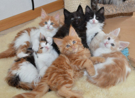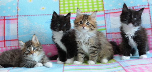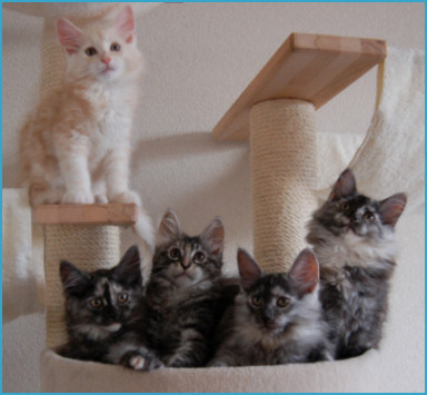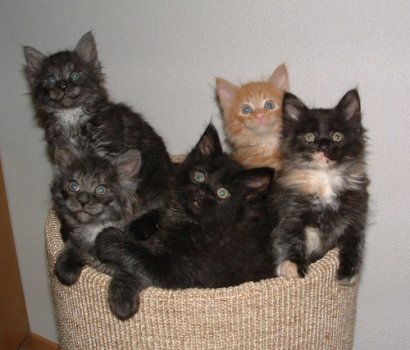 River Byron x Tabula Rasa Levana Geboren 18 juli 2010: 1 rood katertje, 1 zwart schildpad gemarmerd poesje, 3 poesjes zwart smoke schildpad. Stamboom |