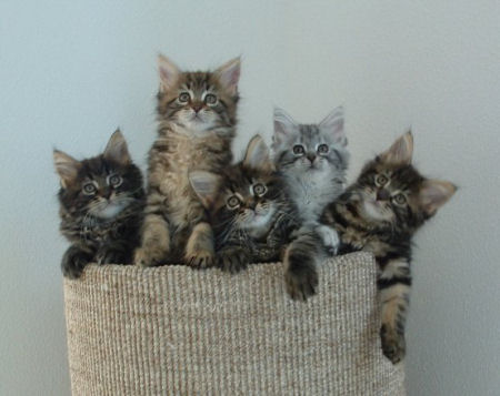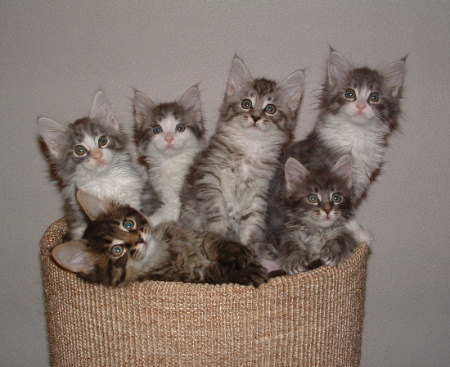 Rasa Norton x Tropikoons Isis of Tabula Rasa 3 oktober 2012: 1zwart zilver gemarmed met wit katertje, 1 zwart zilver gemarmerd katertje, 1 zwart gemarmerd met wit katertje, 1 zwart gemarmerd poesje, 2 zwart zilver gemarmerd poesjes. Stamboom |